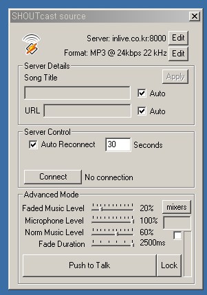 그리고 멘트할때 저밑의 그림에서 lock를 누르면 다시 마이크밸런스 볼륨이 올라가면서 백뮤직은 또 자연히 음악소리가 줄어들어요~~ 그렇게 해서 멘트할땐 멘트목소리를 볼륨을 키워주고... 또 음악이 나갈땐 마이크를 전부 내림으로해서 음악은 크게 나가요~~ 이렇게 해서 음악과 멘트를 차별화를 두어야 하거든요.