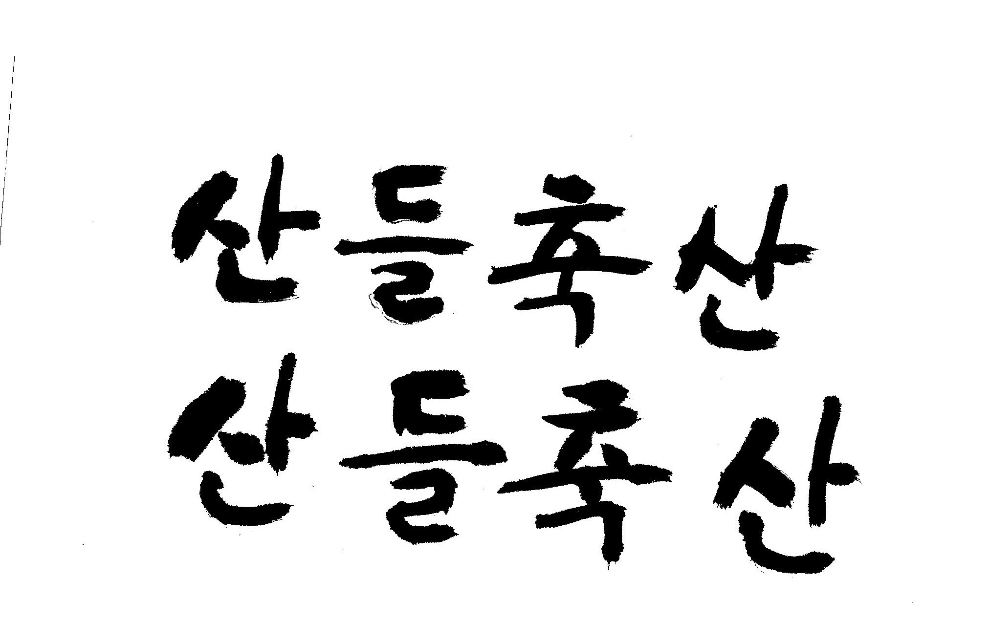 [급]붓서체로 "산들축산"글 캘리부탁드립니다. 김철호 일반 0 7759 2009.02.16 14:48 > > > > > > > > > "산들축산" 붓으로 쓴것처럼 캘리 부탁드립니다. 유려체 말구요 절말 급합니다. 부탁드립니다 참고로 JPG올립니다. 이와 비슷한거요... > > > > > >