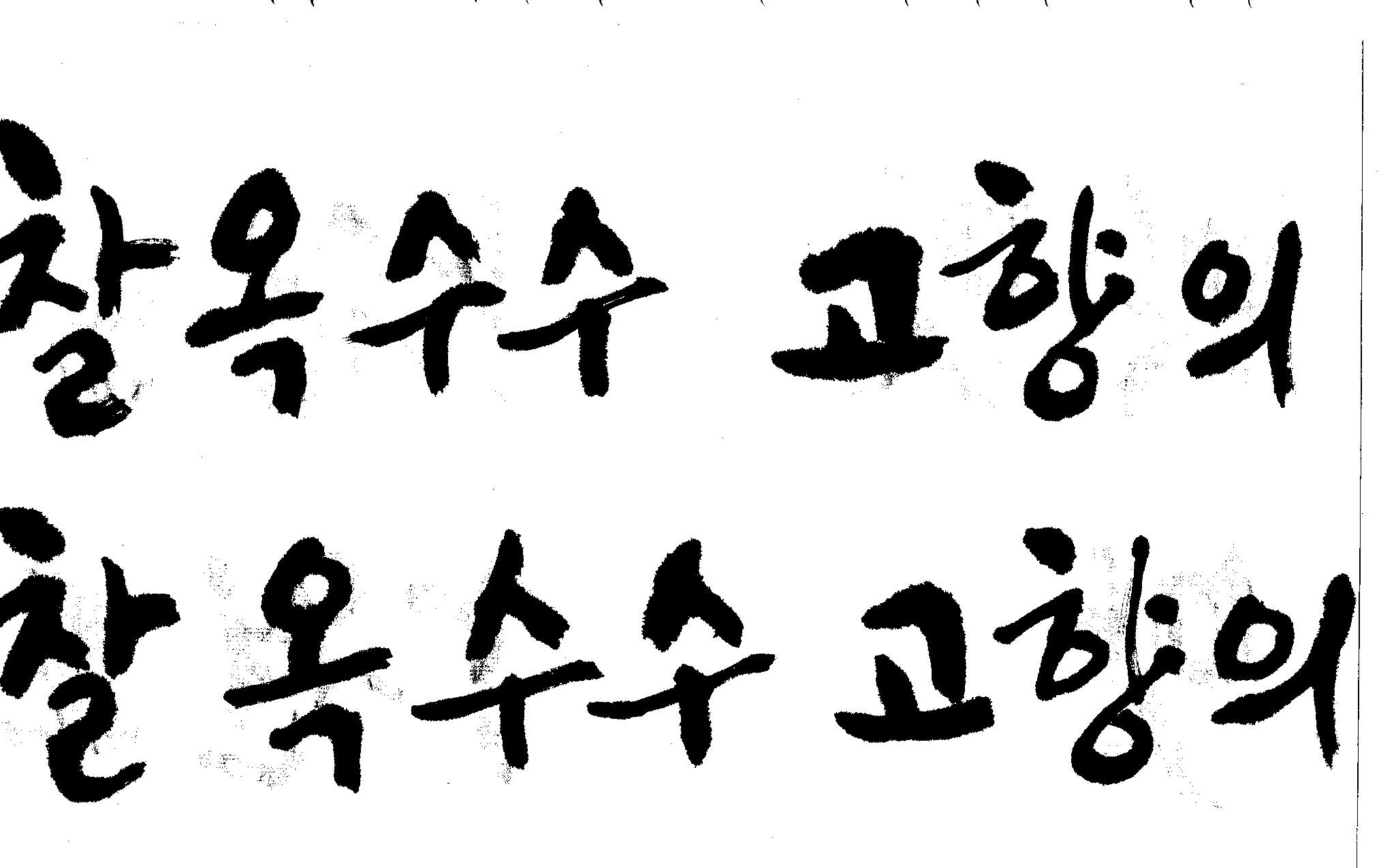 캘리고수님.. 캘리 부탁드립니다. 김철호 일반 1 10534 2008.10.31 15:44 > > 강원도 > 찰옥수수 > 고향의 맛 > > 이상의 문구 입니다. > 캘리 고수님들 시간되시면 도움 부탁드립니다.. > 유용하게 쓰시길 , 스캔이 깨끗하지 못해서 수고 좀 하셔야 겠네요.. "맛"이 라는 글자가 잘 않나와서 따로 올립니다.
