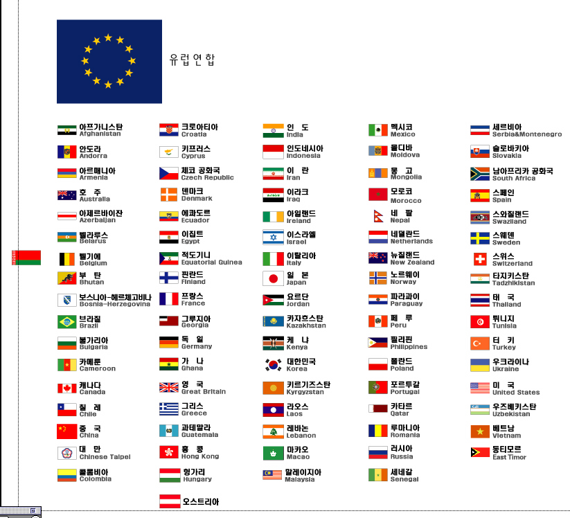 <세계국기>전세계전부는 아닌거같지만요~~참고가되시길. deliday 일반 24 25645 2007.10.02 14:22 -0001.11.30 00:00 세계국기.ai (0byte) + 1307 ^-^